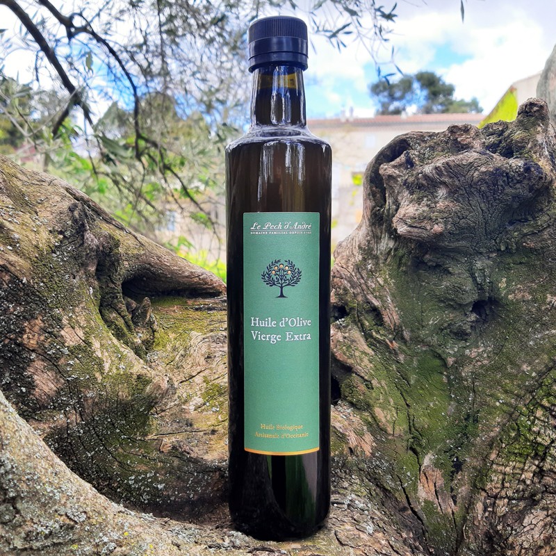 Issue d’oliviers anciens cultivés sans traitement ni irrigation, cette Huile d’Olive Vierge Extra biologique exprime toute la richesse de notre terroir préservé d'Occitanie.